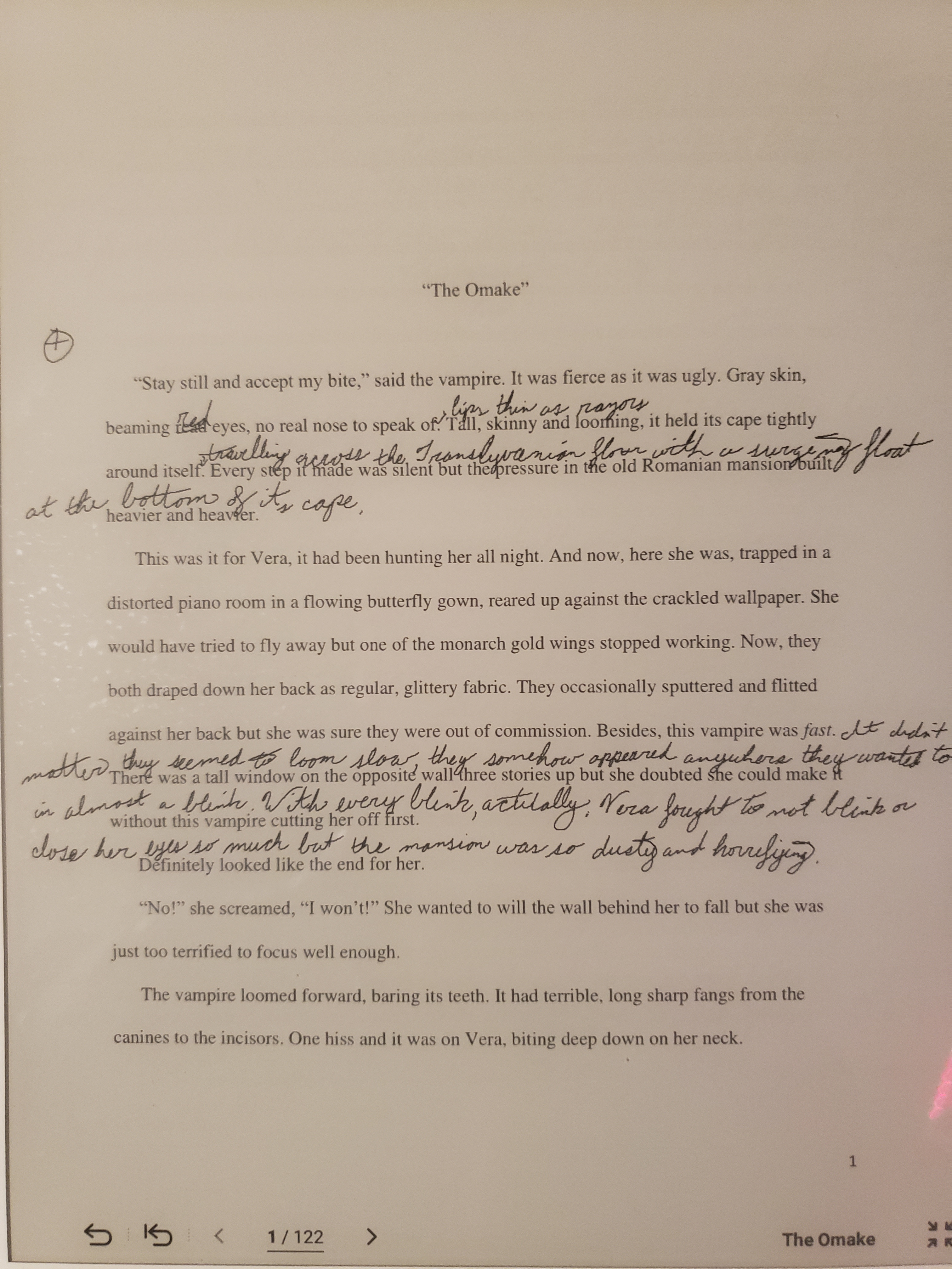 Then apparently Ratta had two updates, which greatly improved the stability of their product. I could write on it without zooming or going back and forth on pages accidentally. I tried hand-editing a short work and a long work to see how it could compare to my previous system. I still don’t like that I can open the side panel on the bottom right corner when my hand goes over it but it’s better than before.