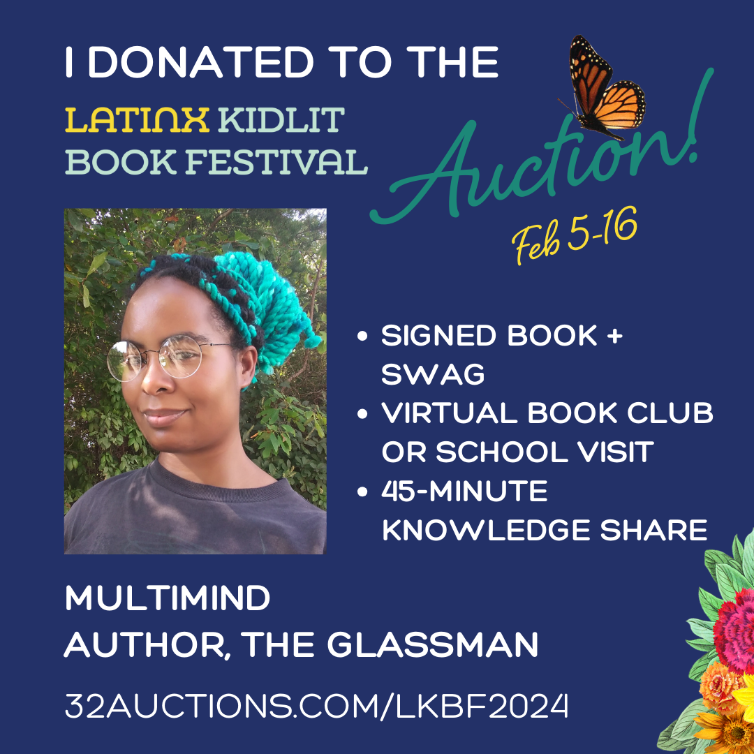By the way, in case anyone is in need to know, while The Glassman does feature Afro-Chicano, Chicano and Black characters exclusively, it’s not a kidlit book given the dark content in the book. It has been donated to help raise money for the auction to boost Latinx children literature authors and book creators. I’m Afro-Caribbean, not Latinx but it’s a good cause so hence why I am donating.