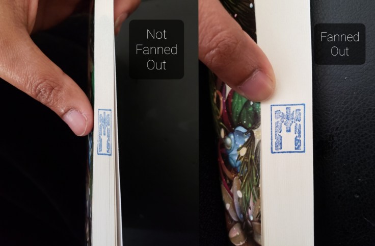So doing stuff like deco-edges comes a bit easy to me because I already did all the hard work in learning this. However, in knowing how to do this, I know when someone is being greedy with the pricing or not. Sprayed edges are extra work but not burdensome extra work. It shouldn’t be a terrible jump in price between the two. An author can do this themselves but they do run the risk of messing up their books in the process if they’re brand spankin’ new to all of this. They would have to use airbrush paint as a start off point. I’m using fountain pen ink because A) I already have it on hand and B) I already know how to do this. Also, if that author is traditionally published, that is the job of their publishing company, not them. If they still want to deco the edges themselves and the company is cool with it, their publishing company had better up the royalty rate.