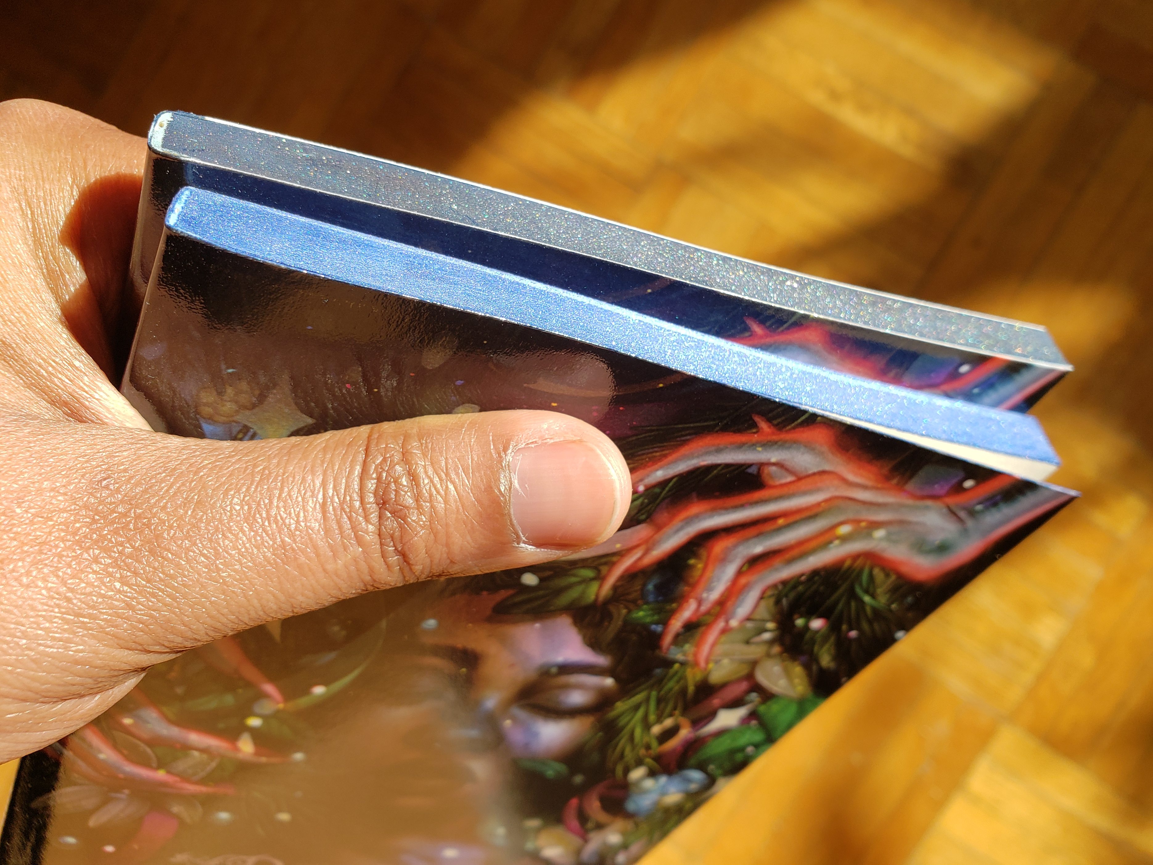Speaking about now in the current time, me seeing the craze for sprayed edges, and seeing some authors feeling pressured to have them, it’s a bit odd because it feels gimmicky to me when the book isn’t signed or things like that. It also feels odd because … this stuff has always been here. Decorated edges has existed for centuries so it’s just a feel of “ok, why now?” The story isn’t made better because there’s some paint on the edges. If the book isn’t signed and/or has other special effects (or it isn’t a case of “this is standard printing protocol, all books will have sprayed edges”), it just feels like a cash grab by trad publishers.