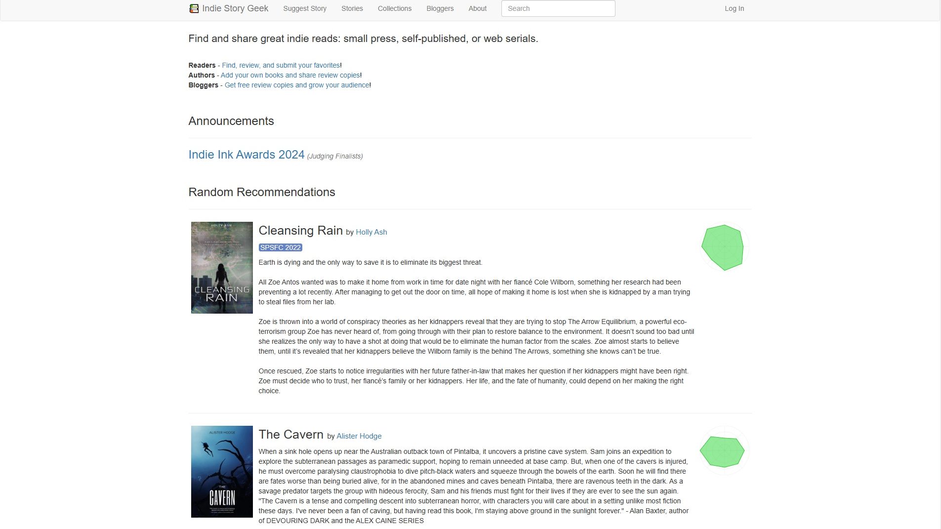 On the reader side, the search feature is one I like. It’s not as “we hand picked something for you” like The Storygraph but Indie Story Geek is way better than GoodReads if you want to read something that doesn’t look like it would make its way on a January 6 Reading List. They actually do let you look for diverse works, be it by race, neurodivergence, mental health, etc, as broad or narrow as you like. You can intersect it with genres like “fantasy/dark” and “horror” or “horror/psychological”. I like that I can find diverse reads very easily and within my preferred reading genres. They really took the fact not everyone wants to read Yet Another Asimov Redux seriously and you’re also still in the usual pile so someone can look for diverse works with a fine tooth comb – but they can’t avoid diverse works at all as they look in any genre, it’s all mixed in. That’s good.