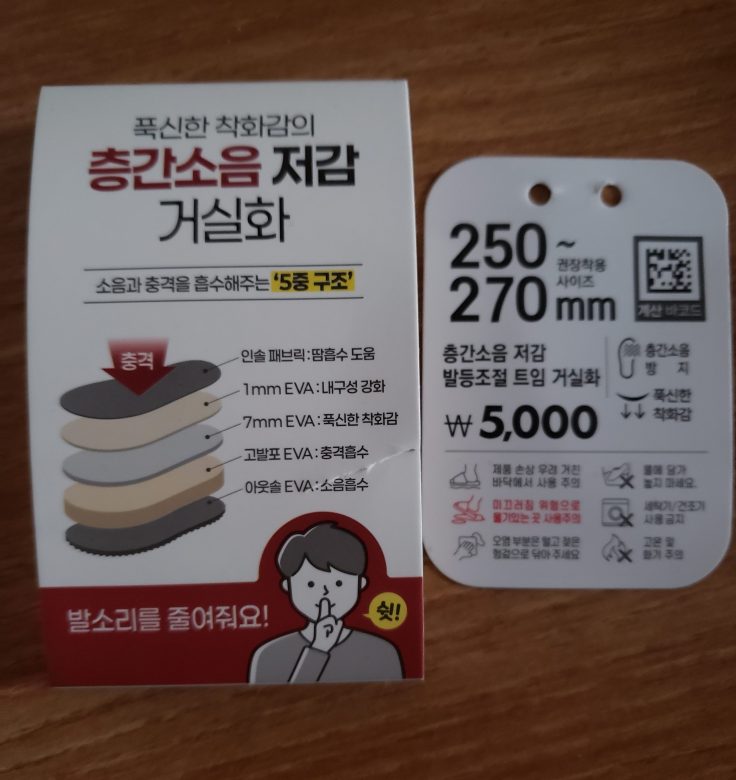 They’re serious about noise there, try to buy slippers that have at least one inch thick sole if you live above others. I knew that before going to the country so I got a pair at Daiso, I think it was about ₩5,000, if even that much.